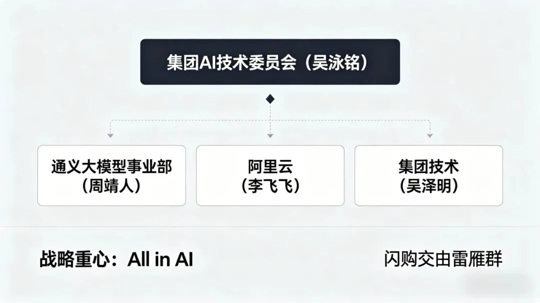 结构:千问红包50亿、模型训练/营销50亿、其他研发100亿。趋势:短期营销投入减少,但模型研发、算力建设、Agent生态投入持续增加,单季投入维持100亿元以上。三、战略大转折:组织架构全面重构,All in AI时代来临