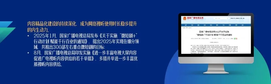 2025年12月,网络视听用户人均单日使用时长达201分钟,同比增长4.2%。其中,微短剧人均单日使用时长达129分钟,已超越长视频,跃居视听细分应用第二位。