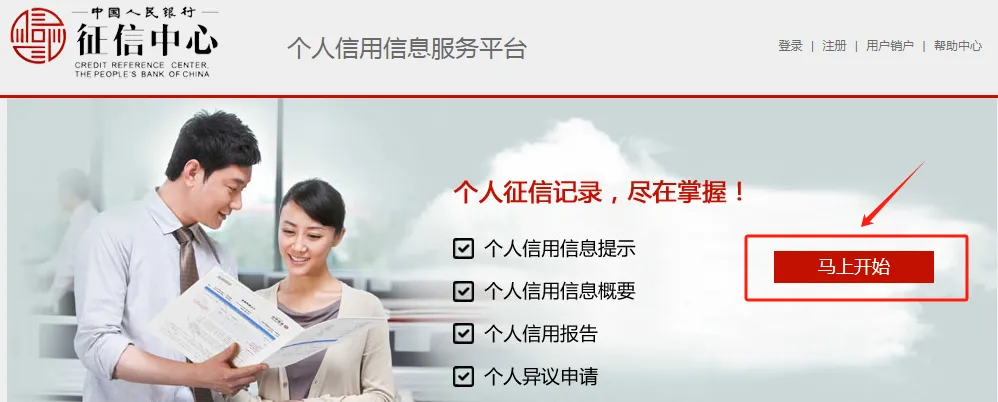 第三步:跳转到个人征信的查询入口后,点击“马上开始”。