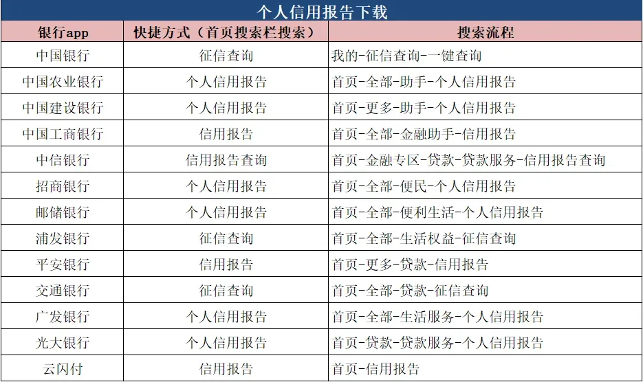 以下为在各个银行APP里查询征信的快捷方式与详细流程搜索方式: