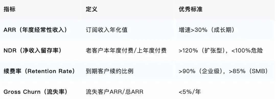 传统财报无法完全捕捉SaaS的商业模式特征,以下指标需通过财报附注或业绩会获取,却是估值的核心依据: