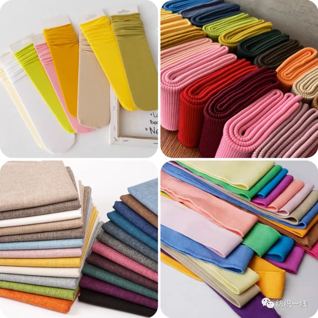 袜业、服装、布、罗纹、面料、纺织品、毛织品、缝纫线绣花、罗口、织带医用绷带等方面。