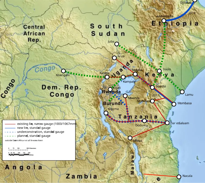 上图为:东非铁路规划示意图