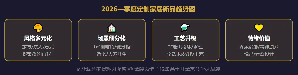 ? 全球趋势:半开放式社交厨房、嵌入式家电+隐藏设计、AI智能助餐是本届厨房展三大主旋律。中国厨电出口额同比增幅已连续18个月超20%。宜家母公司英格卡集团本周对外披露2026年度全球布局规划:将在全球30个新城市开设小型城市店,中国区预计新增5-8家,重点布局成都、杭州、西安等二线核心城市。与传统郊区大型仓储店不同,城市小店面积约3000-5000㎡,主打"体验+设计灵感"而非仓储销售,与线上下单+次日达深度打通。新华社4月9日报道:2025年全球家用清洁机器人市场出货量达3272万台,同比增长20.1%,其中扫地机器人出货量2412万台,增长17.1%。全球前五清洁机器人厂商全部来自中国——石头科技、科沃斯、追觅、云鲸、添可。石头科技2025年前三季度研发投入10.28亿元,同比猛增60.56%,占营收比例8.52%,研发强度领跑行业。? 追觅的智能割草机器人搭载3D激光雷达,可识别300余种庭院障碍物,已从"扫地工具"进化为"智能庭院管家",欧美高净值消费者热捧。本周一条行业大消息震动设计圈:米兰国际家具展与巴塞尔艺术展正式建立为期三年的战略合作关系。由国际知名设计机构Lissoni & Partners操刀设计,汇集23个顶尖意大利品牌的"收藏家休息室"将于2026年巡展至迈阿密海滩及香港站。这标志着家居设计的价值定位正式进入艺术收藏与高端投资视野,高端家居品牌正与奢侈品、艺术品市场深度融合。对国内品牌而言,这是一个重要信号:设计叙事与品牌故事性,将成为未来10年家居溢价的核心驱动力。本周(4月14日),家居新范式发布了2026年一季度定制家居新品盘点,16家品牌共推出24+款新品,呈现四大核心趋势。其中亮点连连:欧派"海派梧桐里"系列复刻1920年代爵士霓虹,融入非遗贝母漆工艺;V6家居"摩登流影"系列斩获美国缪斯金奖;金牌家居联名敦煌当代美术馆,把丝路色彩解构进现代柜体;百得胜推出纳米负氧离子技术,让衣柜空间变"森林氧吧"。? 本周新品"最卷"奖:V6家居同时拿下美国缪斯金奖+意大利IIDA大奖,两款新品双线斩获国际认可,中国家居设计开始走出自信的国际步伐。澎湃新闻4月9日报道:2026年中国智能家居市场规模突破8000亿元,同比增长35%,全屋智能渗透率突破35%。从CIFF家博会的展场可以感受到这一变化:AI已从"展厅噱头"演变为家居产品的标配灵魂。海尔"智家大脑"让空调感知空气质量自动开新风;老板电器"食神大模型"识别冰箱食材、联动灶具烹饪;贝乐按摩椅接入DeepSeek大模型,实时监测血压心率……从前台产品到后台制造MES系统,AI渗透至产业每一根毛细血管。? 银发经济成新战场:空巢老人比例59.7%(独居14.2%),AI健康监测家居为老龄化社会提供了刚需解法——床垫实时监控血氧血压,异常预警直达子女App。鸿蒙不只连接客厅,本周多个案例揭示其正深入家居制造端。意达科技将华为鸿蒙底座引入皮料裁切工序,打通真皮制皮→裁剪→内饰等多车间数据壁垒,实现跨屏流转与全链路效率提升;爱玛在皮料裁剪机上集成AI视觉检测模块,AI排版系统自动规划切割路径,大幅减少原料浪费。此外,成都建博会招募名单中,华为鸿蒙智家作为重量级参展方,将携智能家居全场景解决方案亮相4月16日展会。? 鸿蒙切入家居制造端,意味着"智能家居"的定义正在从消费端向生产端延伸——未来的竞争,或许不仅是产品智能,而是整个供应链的数字化效率。距离4月16日开幕不足24小时,第25届CCBD中国成都建博会已全面就绪。本届展会规模16万㎡,1000+品牌参展,重量级阵容包括华为鸿蒙智家、索菲亚、欧派、松下、西门子、海尔、雷士、公牛等,同期举办30+场高端论坛和20+场品牌新品发布会。值得关注的是,首届"工厂直采节"同期亮相,面向设计师、装饰公司和经销商一站式直采;首届2026健康建筑大会也将在此揭幕,"好房子"标准有望在会上进一步细化落地。随着一季度以旧换新成绩单亮眼,2026年"国补"政策深化落地成为本周行业热议话题。根据国家发改委&财政部政策,家电品类15%补贴全年执行,智能家居品类首次纳入补贴范围;全国超过20个省市宣布额外叠加地方补贴,部分城市实际折扣可达25%-30%。业内人士分析:二季度叠加"五一"装修旺季、成都建博会、广交会家居专区三重利好,2026年上半年家居消费有望创近五年新高。? 消费者攻略:购买定制家居可叠加"国补15%+品牌让利+旧换新回收"三重优惠,以旧换新补贴进老房装修改造同样适用,趁五一旺季下单是今年最划算的节点之一。编辑:原原 责编:民哥