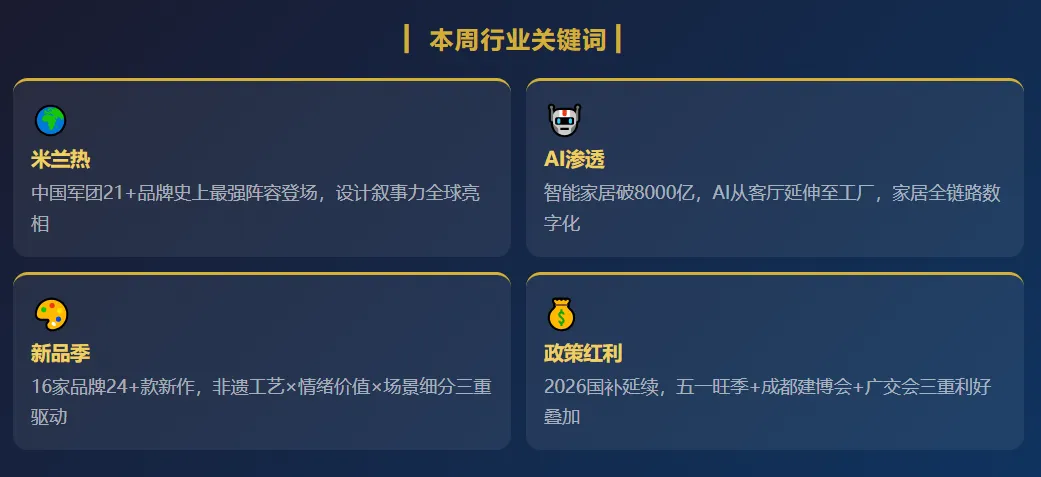 家私金牌榜行业观察 每周精选 · 国际国内双视角 · 0415期深度资讯