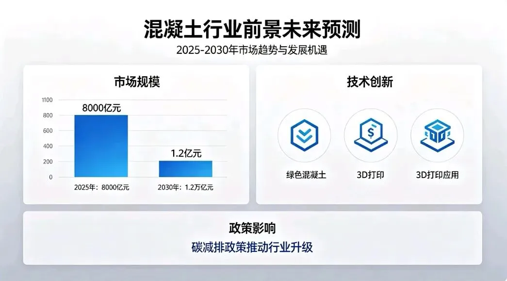 长期看,混凝土作为建筑工程最核心基础材料的地位不可替代,行业将在结构优化中实现稳健、可持续、高质量发展,成为推动中国建筑业转型升级、实现“双碳”目标的关键支撑力量 。