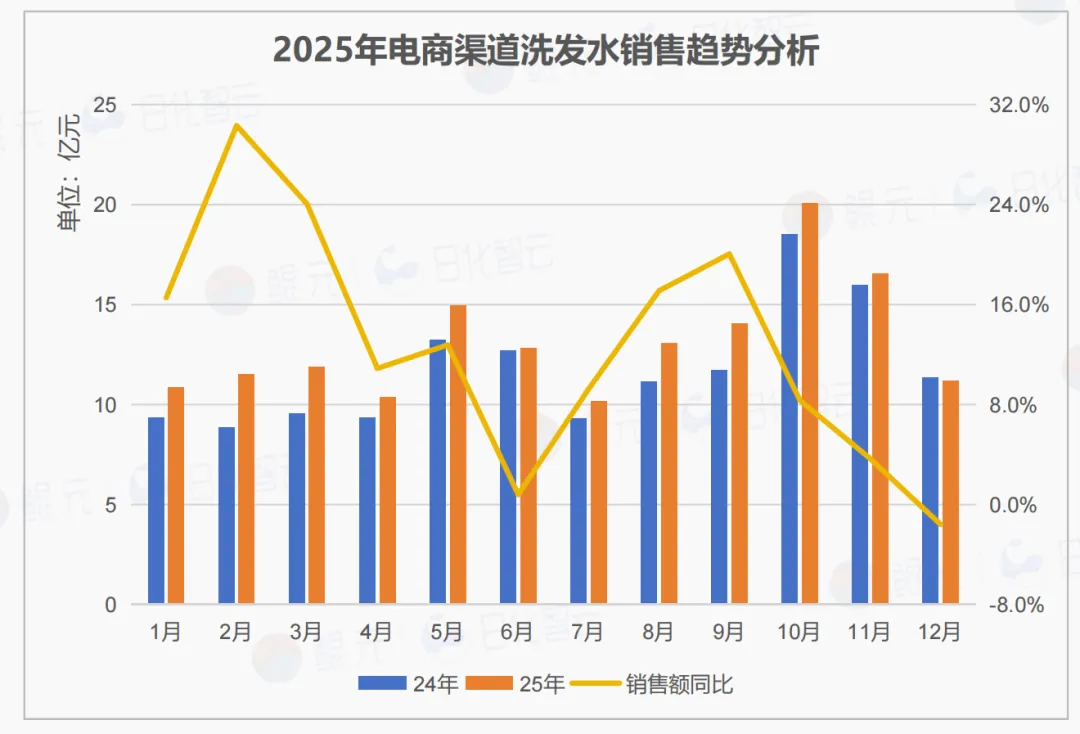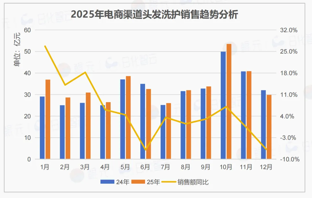 5月、10月、11月为年度销售峰值,其中10月销售额连续两年超49亿,可能与“双11预售”有关,显示大促节点对头发洗护品类拉动显著。