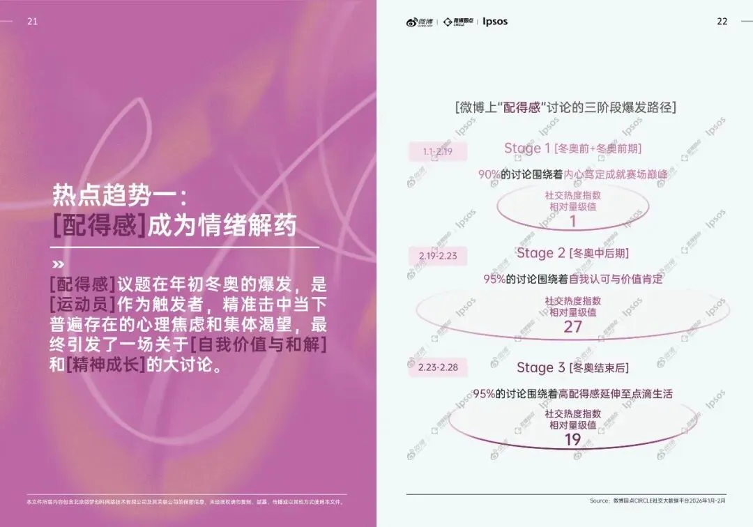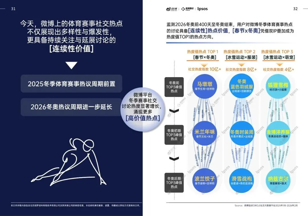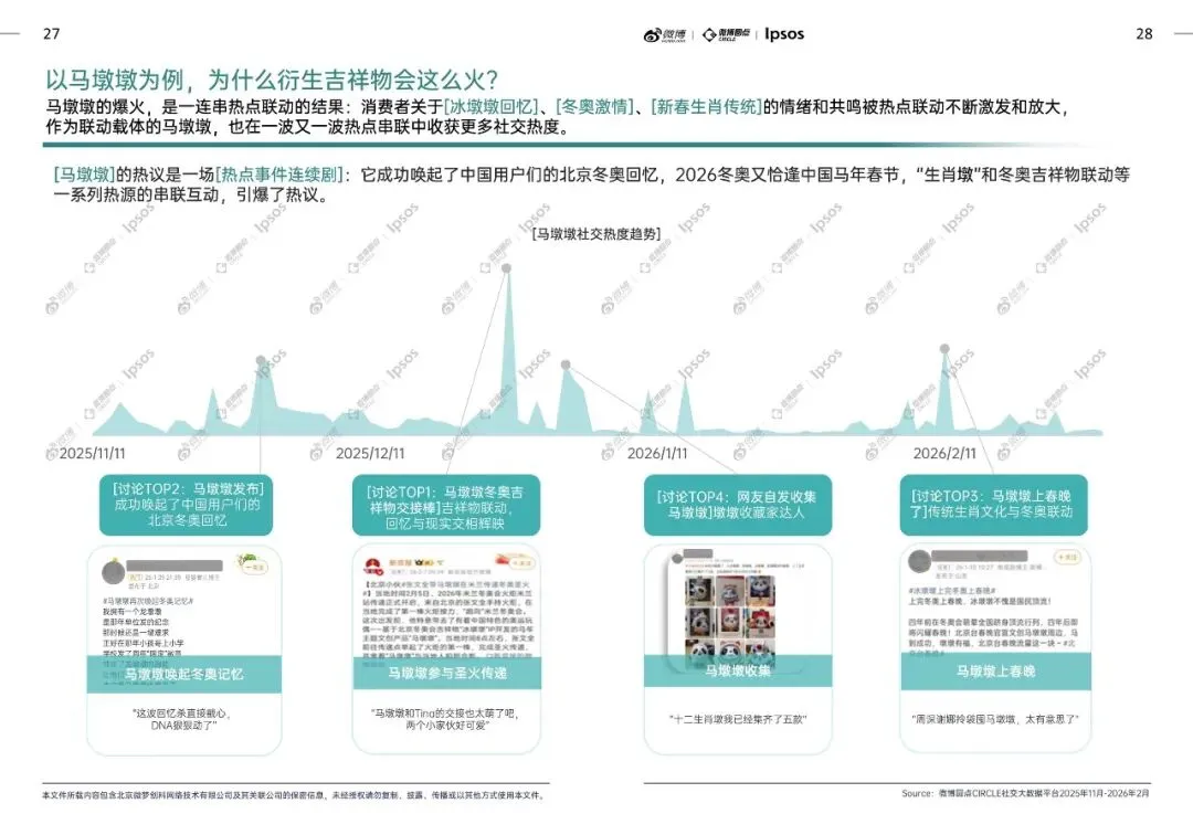 2026体育大年的流量逻辑已从“金牌崇拜”彻底转向“情绪代偿”,谁能讲好“配得感”与“萌物”的故事,谁才能真正收割用户心智。报告显示,冬奥期间微博全站有效阅读量超250亿,但2717个热搜中,以“马墩墩”为代表的衍生吉祥物热度反超官方IP,关于运动员“高配得感”的精神讨论成为现象级话题。
