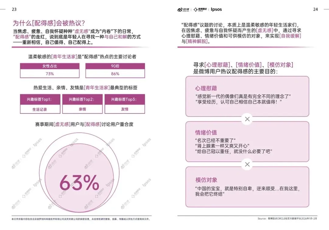 本质是“内卷”时代下的需求侧反推。消费者看赛事不再是“判卷”,而是在寻求**心理按摩**。一方面,“配得感”精准击中了年轻人的自我怀疑,运动员从“夺金符号”变成了“理想自我的投射”;另一方面,“马墩墩”等萌物承载了最轻量化的文化陪伴。品牌若还在生硬曝光,不如去卖“情绪止疼药”。
