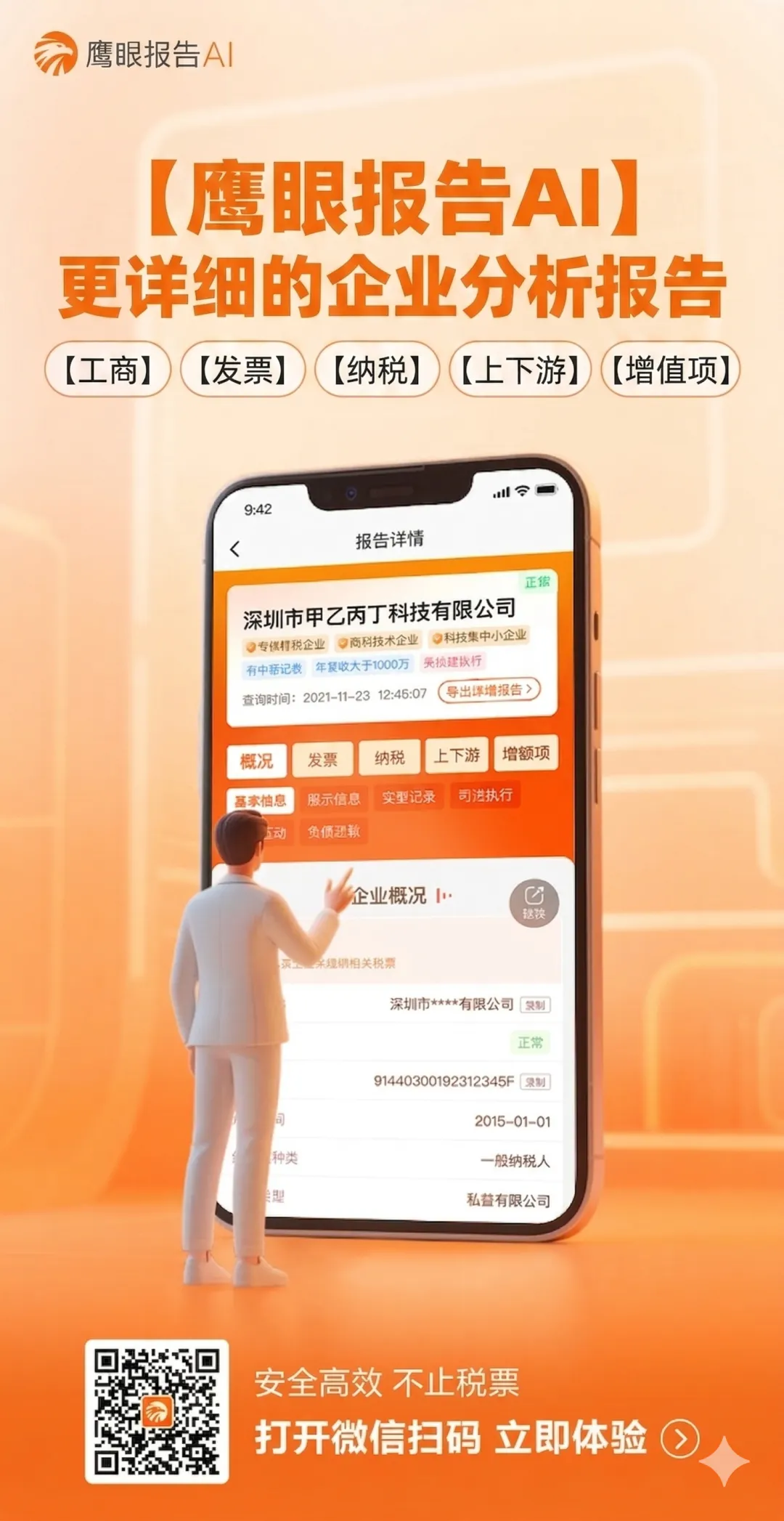 【鹰眼报告AI】以AI与大数据为支撑,穿透数字表象,无论是信贷、供应链、投资还是自查,它都能成为你的“智能鹰眼”,帮你看透企业真相、规避风险,让决策更有底气。