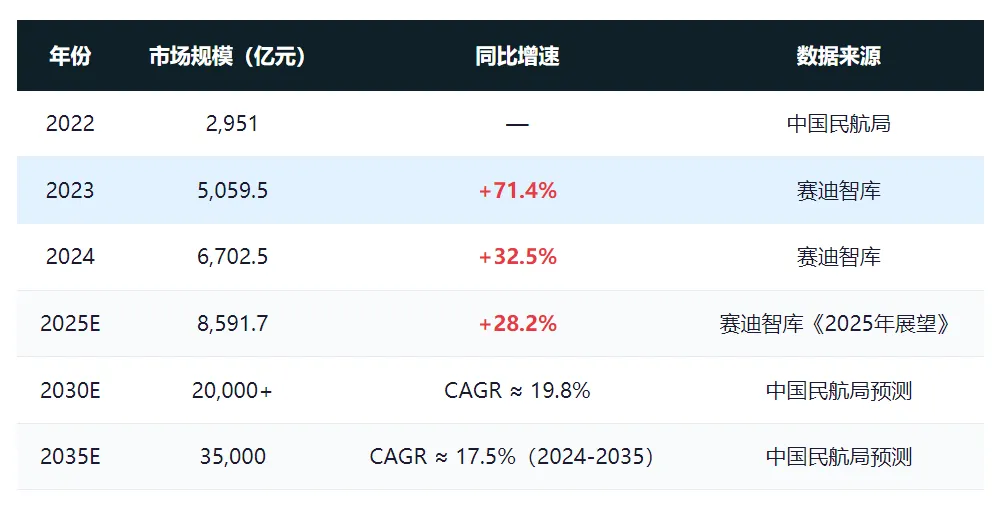 来源:赛迪智库、前瞻产业研究院、中国民航局、中国航空工业发展研究中心数据综合测算。注:细分规模为基于行业占比推算,渗透率为相对潜在可及市场的比例。