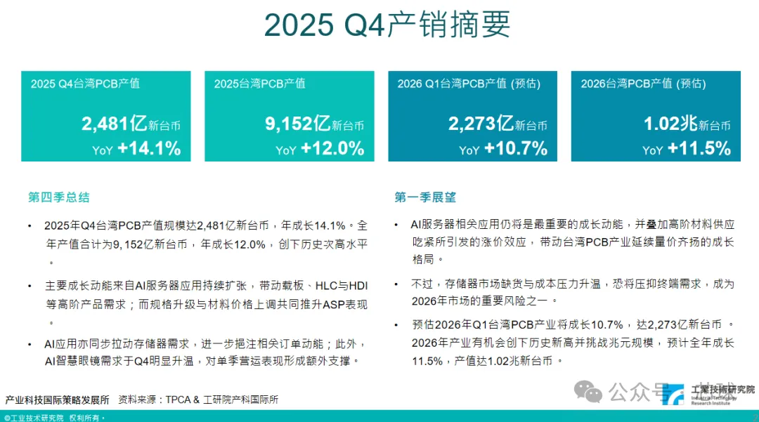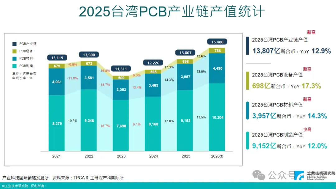 2025 年台湾 PCB 产业产值达 9152 亿新台币,2026 年预计破兆。