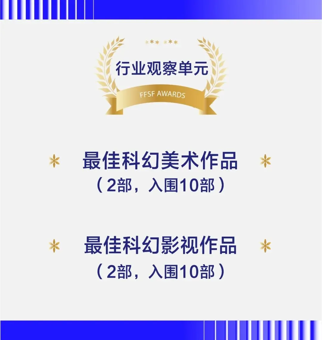 2.“最佳科幻影视作品”奖项,设置最佳原创科幻影视作品、最佳AIGC科幻影视作品两个赛道,所推选作品须为原创作品。每个奖项单元委员会委员每人推荐作品3-5个,每个奖项委员可推荐本人作品最多1个。
