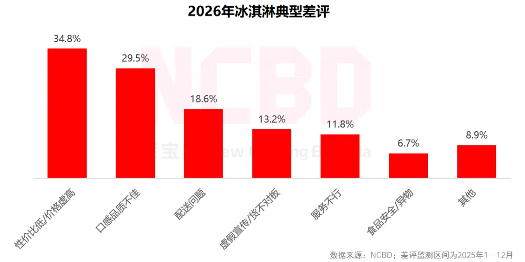20、在冰淇淋典型差评中,性价比低/价格虚高占比34.8%,吐槽最多;其次是产品方面,口感品质不佳占比接近30%;18.6%的差评与配送有关;13.2%的差评涉及虚假宣传