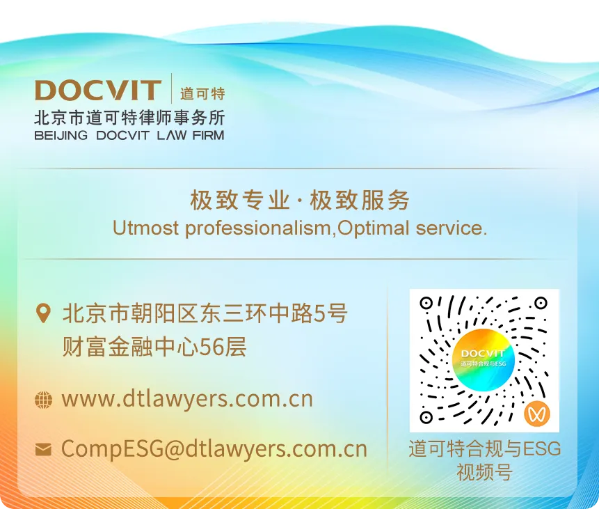 本公众号所刊登的文章仅代表作者本人观点,不得视为道可特律师事务所或其律师出具的正式法律意见或建议。如需转载或引用该等文章的任何内容,请注明出处。未经本所书面同意,不得转载或使用该等文章中包含的任何图片或影像。如您有意就相关议题进一步交流或探讨,欢迎与本所联系。