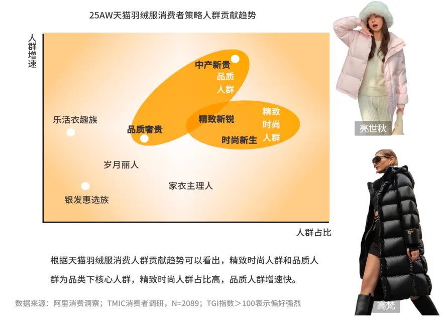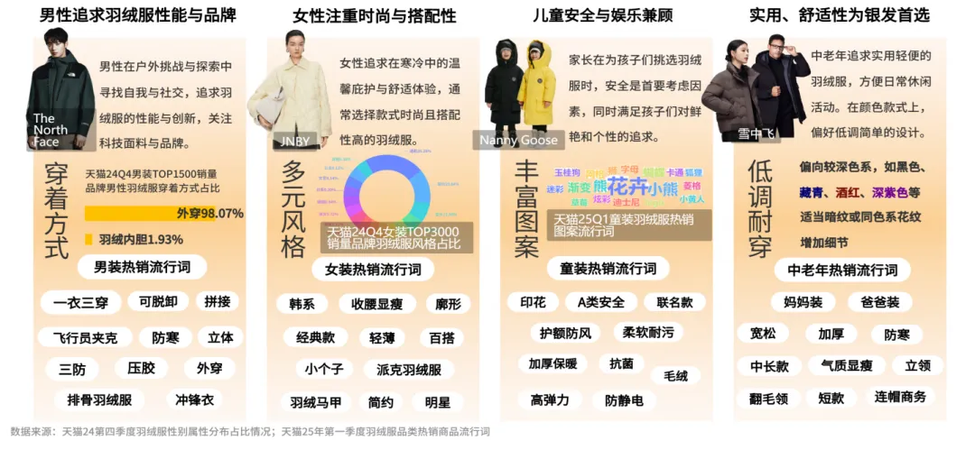 • 精致时尚人群:被产品的潮流颜值驱动,是羽绒服消费的核心主力,愿意为好看、好搭买单。