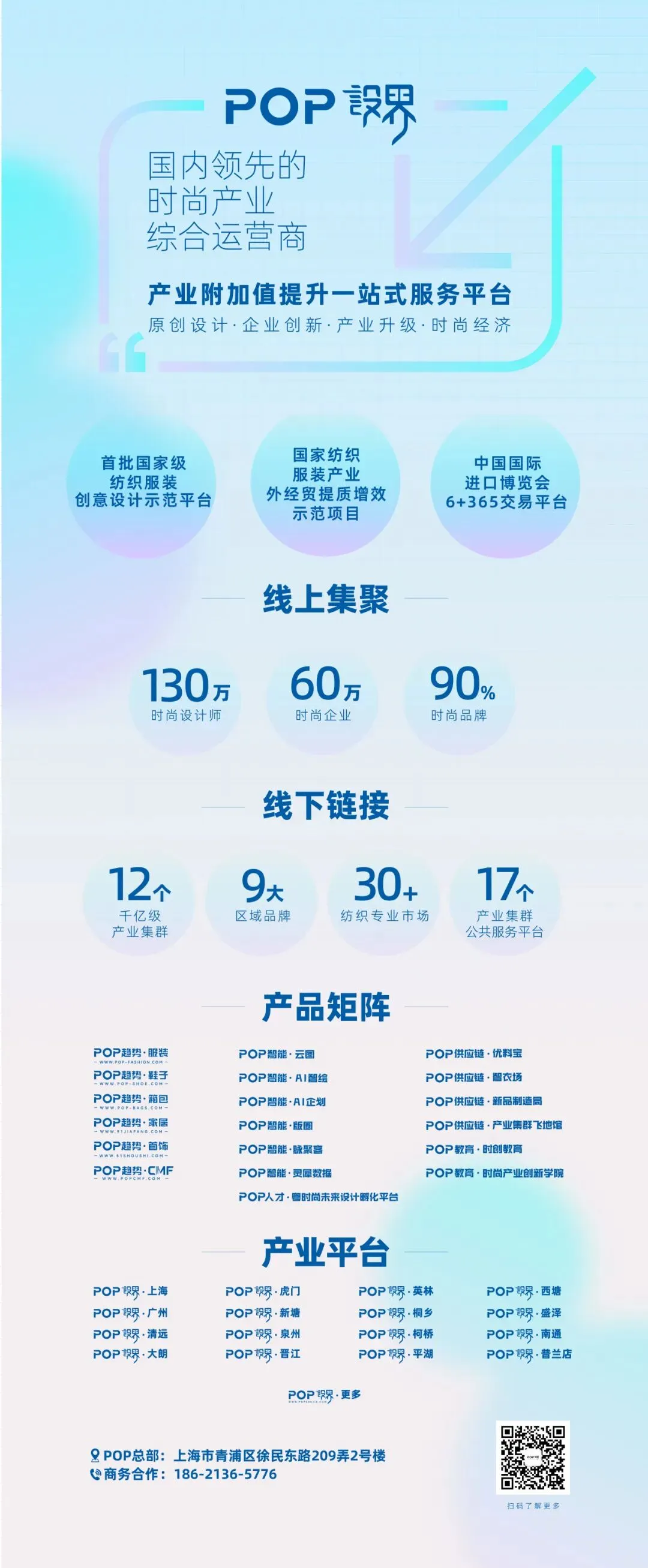 POP 设界·中国平湖设计城位于平湖市相伴广场20幢,以设计、研发、品牌等生产性服务业的引入和聚集为目标,立足羽绒服产业,延展服务箱包、童车(潮玩)等时尚产业,打造平湖时尚产业公共服务、原创设计和品牌化发展赋能服务体系,进一步提升平湖羽绒、箱包、童车等产业的全球价值链地位,深化平湖在时尚领域的国际竞争主动优势,打造具有全球影响力的平湖时尚产业 IP。