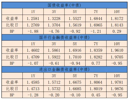 中债进出口金融债曲线整体下行,10年期带动曲线对应期限下行0.95BP,至1.9781%。