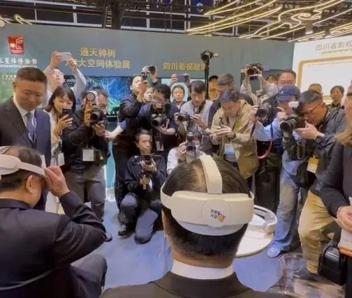 香港政务司司长陈国基“、香港贸发局主席马时亨亲临体验《三星堆—通天神树》,佩戴头显沉浸式感受古蜀秘境,盛赞项目带来酷炫视觉体验,高度肯定科技赋能影视的创新价值。