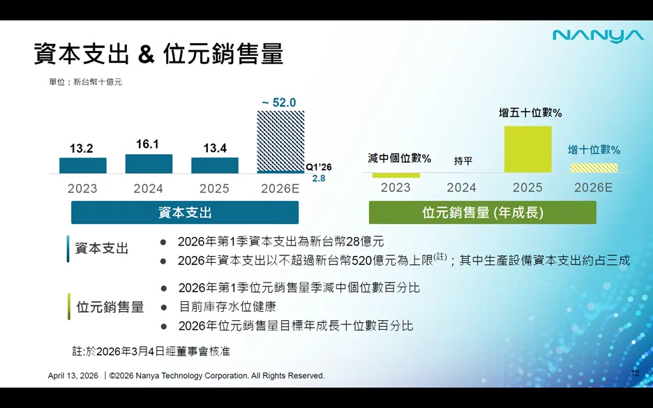2026年全年资本支出上限:不超新台币520亿元,生产设备资本支出约占三成