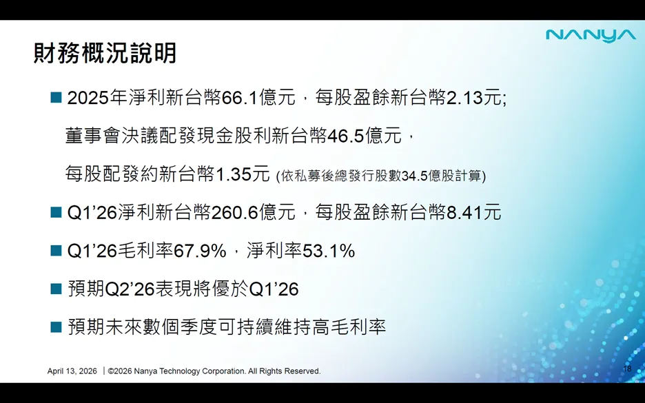 预期Q2’26表现优于Q1’26,未来数季可持续维持高毛利率