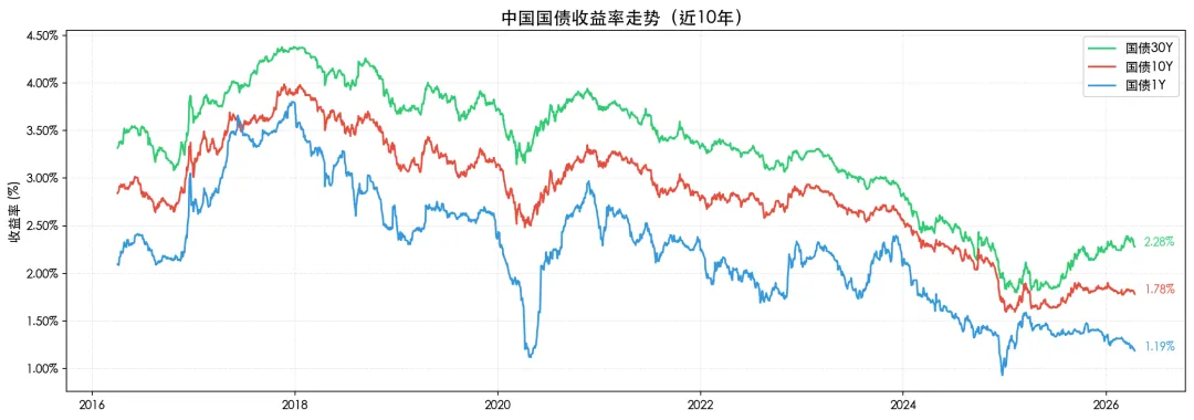 三者均处于近 10 年历史低位,长端利率依然承压。