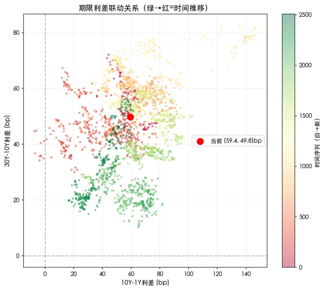 10Y-1Y 利差:59.41bp历史分位:▓▓▓▓▓▓▓░░░░░░░ 50.0%(历史中枢) 0% 50% 100%