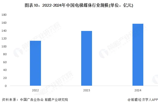 中国广告业协会的数据显示,2023年中国电梯媒体行业规模达到139亿元,同比增长超20%;初步统计,2024年行业规模超过150亿元。