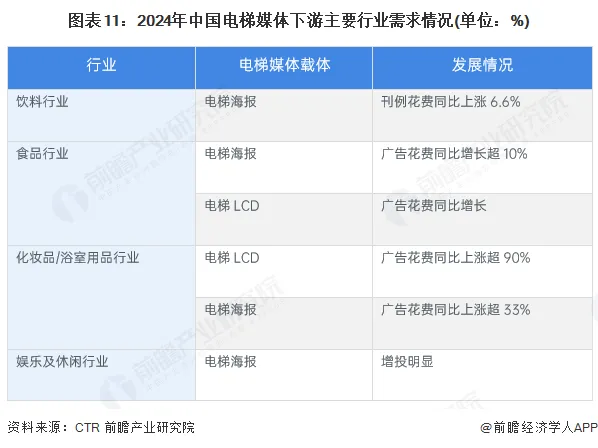 ——电梯媒体需求领域:饮料、食品、化妆品等行业需求增长明显