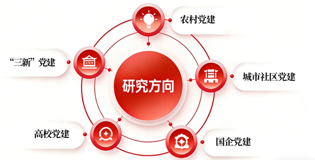 研究中心以“新时代党的基层组织建设”为特色研究领域,围绕“解决大党独有难题”和“增强党组织政治功能和组织功能”两大战略问题,聚焦农村党建、城市社区党建、国企党建、“三新”党建和高校党建5个研究方向,开展综合性、持续性、前沿性研究,为各领域基层党组织建设提供高水平决策咨询。
