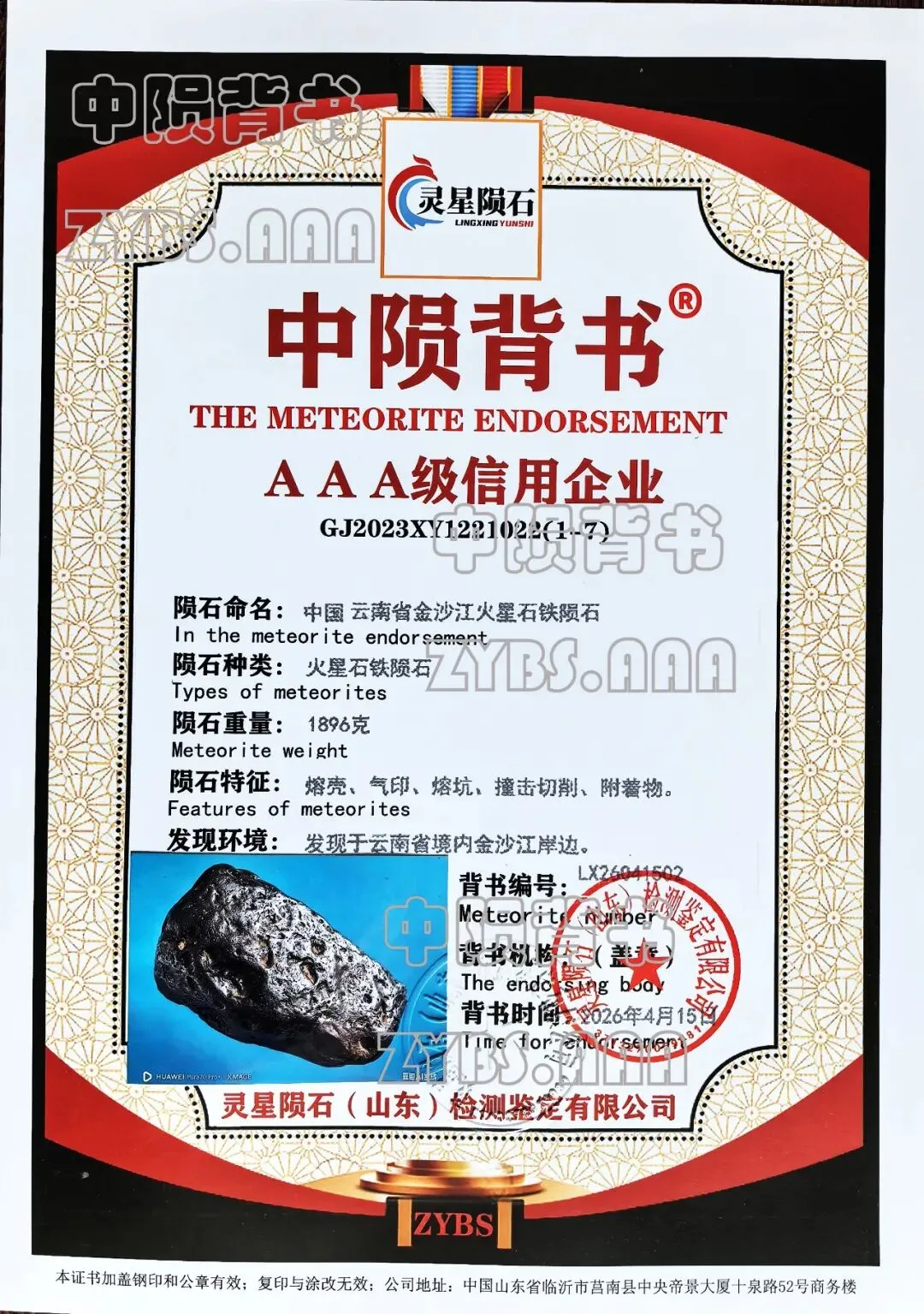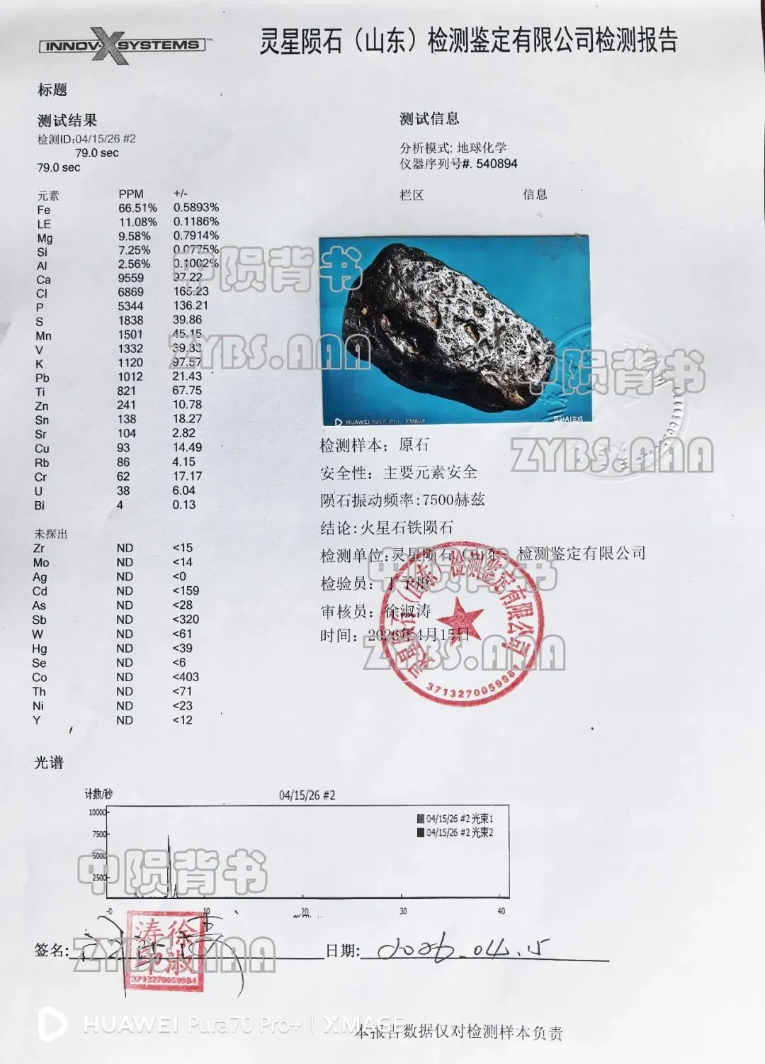 检测机构:灵星陨石(山东)检测鉴定有限公司