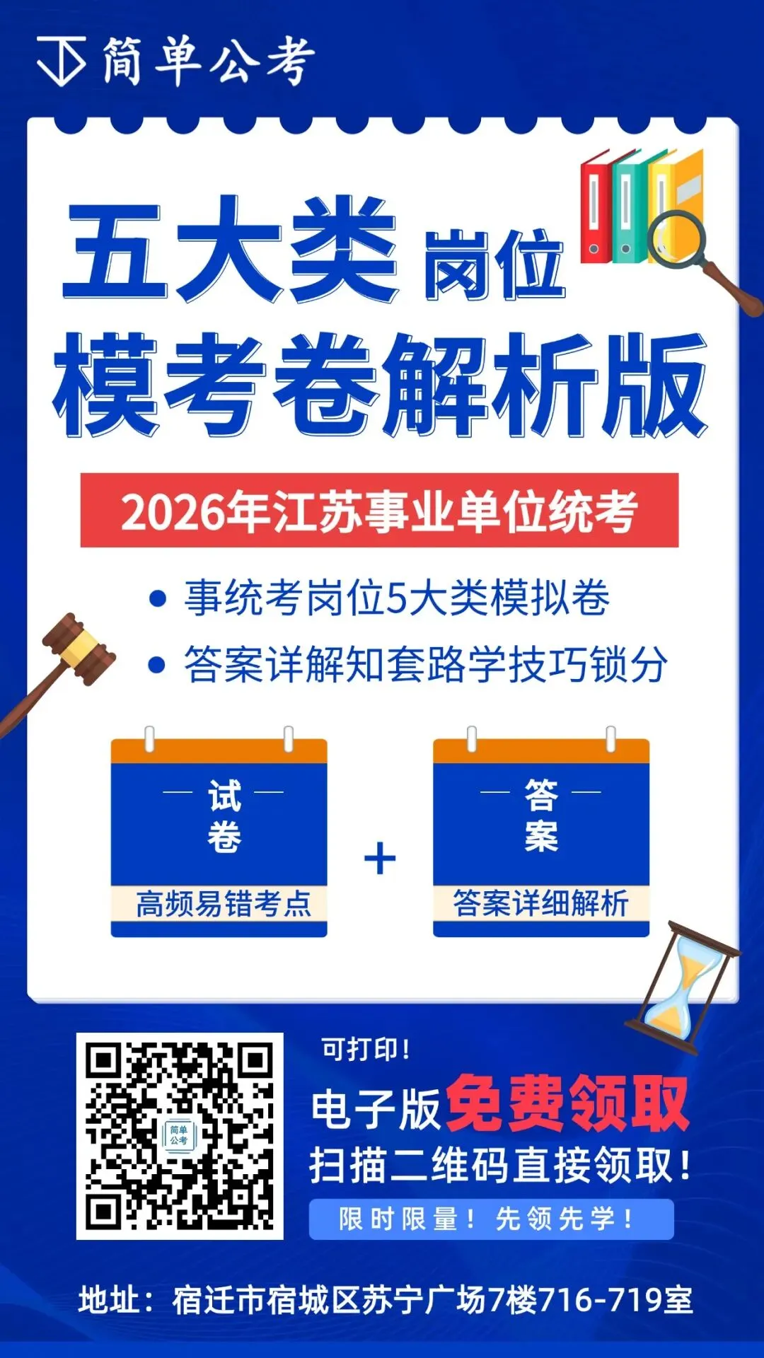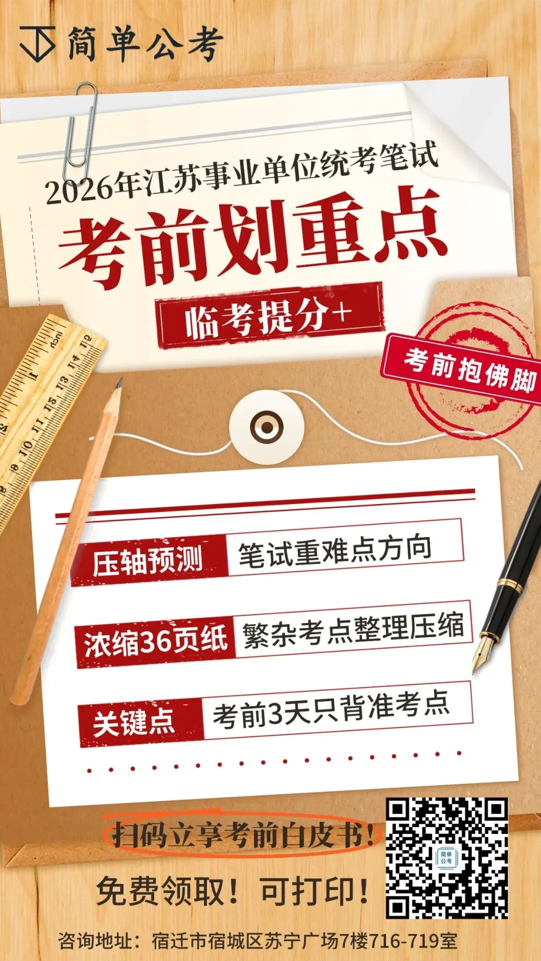 宿迁简单公考地址及联系方式 公司地址:宿迁市宿城区苏宁广场7楼717-719室 联系方式:17834586888/1951732395/18083747015 戳“阅读原文”免费领取备考资料