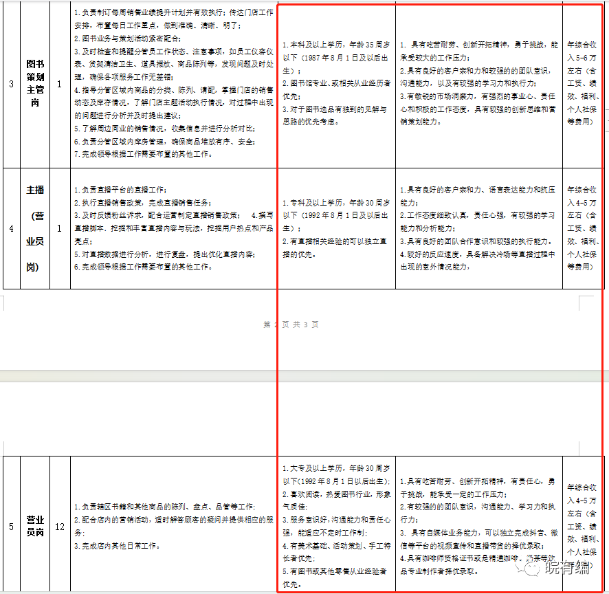 图书策划主管岗 1人