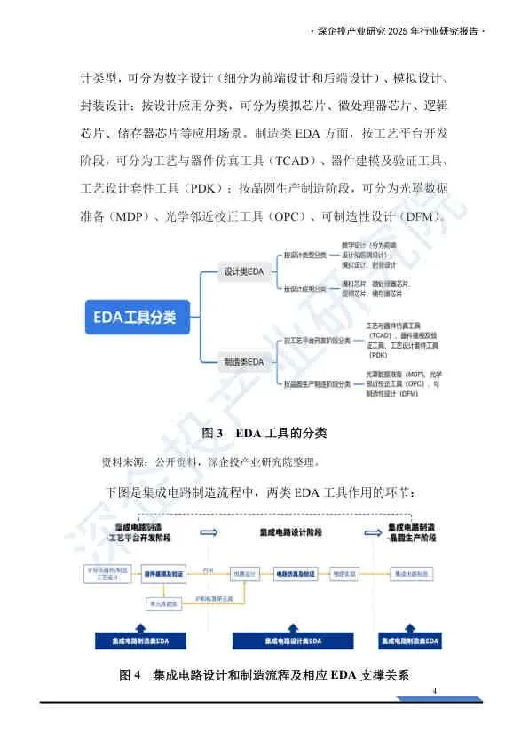 - 制造类EDA:包括工艺与器件仿真(TCAD)、器件建模、光罩数据准备(MDP)等,用于解决先进制程下的物理限制与良率问题。
