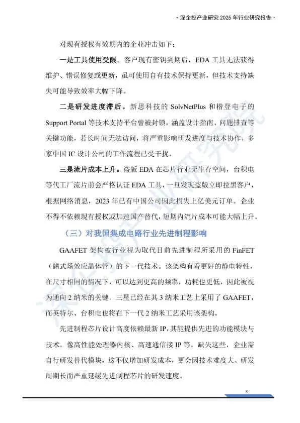 - 短期冲击:现有授权到期后,企业将失去技术支持与更新,可能导致研发效率下降;盗版无法通过代工厂(如台积电)认证,迫使企业加速寻找替代方案。