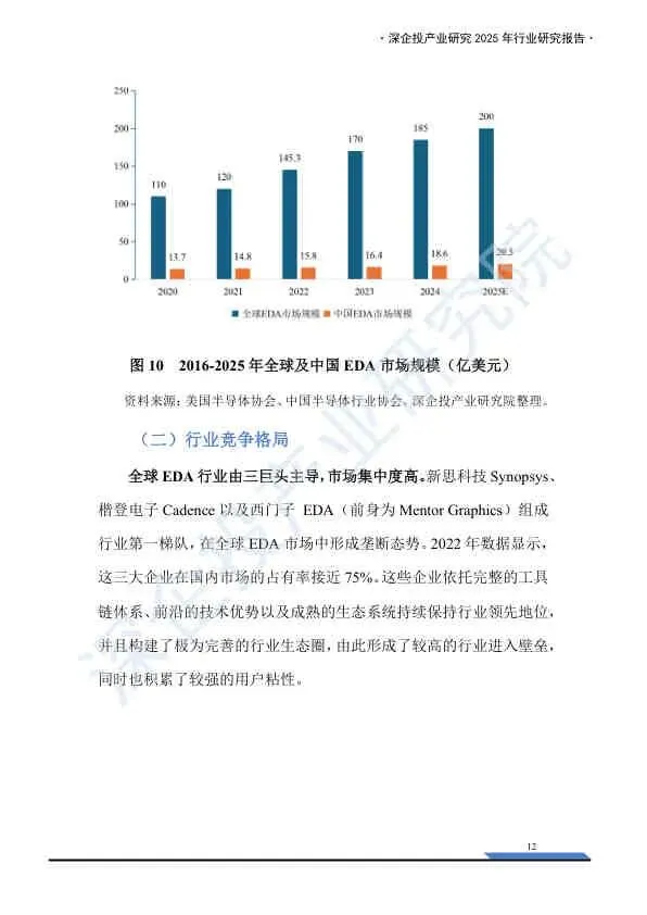 - 市场规模:预计2025年全球EDA市场规模达200亿美元,中国达20.5亿美元。