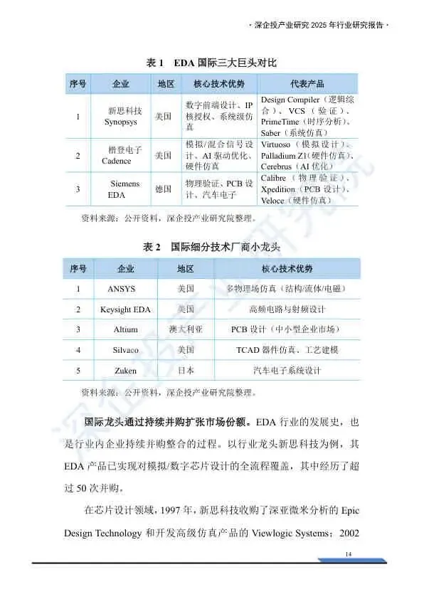 - 国际巨头:通过持续并购(如新思科技收购Ansys)构建了完整的工具链与高壁垒生态。