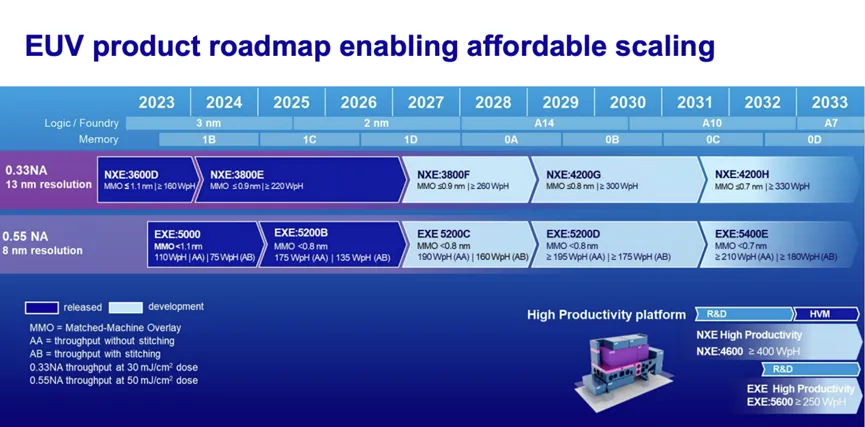 如上图所示,在本季财报会上,ASML还披露了公司的EUV光刻机路线图。按照ASML所说,公司此前成功实现1000瓦EUV光源演示验证,意味着能够确保低数值孔径(Low NA)EUV技术在未来多年的可扩展性,并为未来满足客户更高生产率需求奠定基础。而公司EUV 技术的进展,在短期内对业务也带来了积极影响,每小时晶圆处理量的增加能够帮助提升产能。