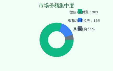 市场格局:- �� 微信支付+支付宝:占80%+市场份额- �� 银商商务、拉卡拉等:占15%左右- �� 其他机构:占5%左右生存空间:- 排名10名之后,几乎无空间- 中小机构需转型或退出- 真正赚钱的可能只有前20家预判3:业务模式重构