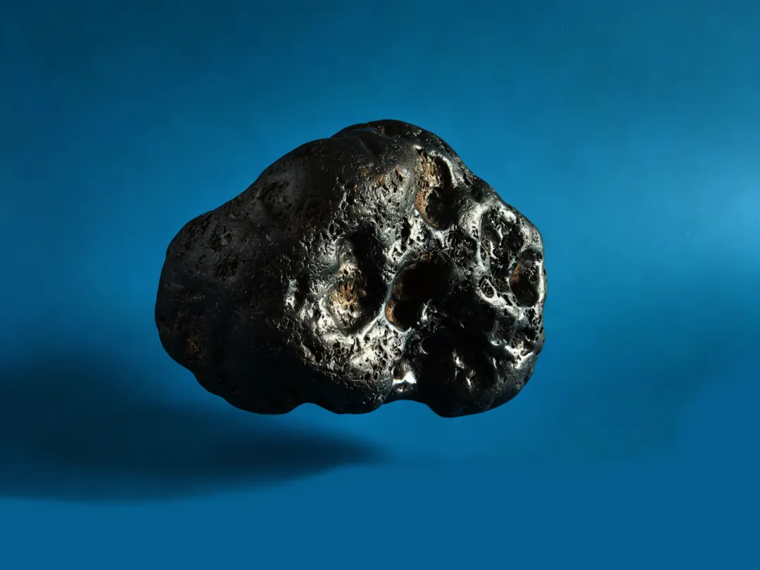 熔壳:表面覆盖一层厚度均匀的黑色熔壳,厚度约0.1-0.5mm,质地致密,无明显风化破损,为铁镍金属氧化形成的致密外壳,区别于地球岩石的风化层,是陨石进入大气层后表面熔融冷却形成的标志性特征,符合铁陨石熔壳的典型形态特点。
