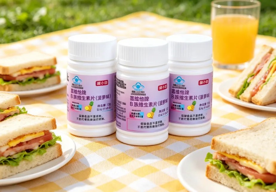 配方上,涵盖 8 种必需 B 族维生素,配比贴合日常补充需求,额外添加维生素 C,助力 B 族成分吸收;原料采用天然橙子、柠檬提取物与酵母 B 族复配,拒绝合成色素,风味自然;工艺上,采用低温压片技术,保留成分活性,咀嚼后快速溶解,无需温水送服,生物利用度≥80%;安全上,通过国家食品安全认证,无防腐剂、无蔗糖,龋齿人群也可服用;服用体验上,橙子风味清新,口感酸甜,片剂轻薄易咀嚼,独立小包装设计,方便随身携带,适合差旅、上课、通勤时补充。