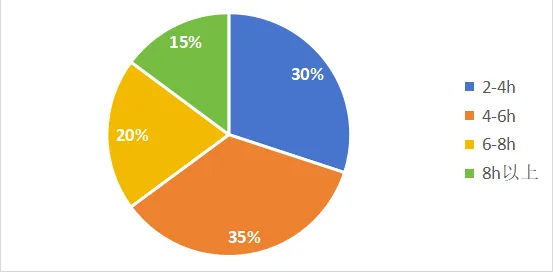 分 析:从图中可以看出超过三分之二的同学每日学习时间在4小时以上,其中,学习时长在4-6小时的同学占比最高,是绝对的主力群体。学习时长在6小时以上的同学也占据了相当比例,体现了较高的学习投入度。考虑到临近暑期,学业压力增大,这一分布符合预期,反映了同学们备考的普遍紧张状态。