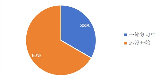 分 析:专业课复习进度是当前最大的挑战。近三分之二的同学尚未开始专业课复习。仅有三分之一左右的同学进入了一轮复习阶段。结合教辅购买情况 (64%已购买),说明即使资料到位,大部分同学在专业课复习的启动上存在明显滞后,急需引起重视并尽快开始。