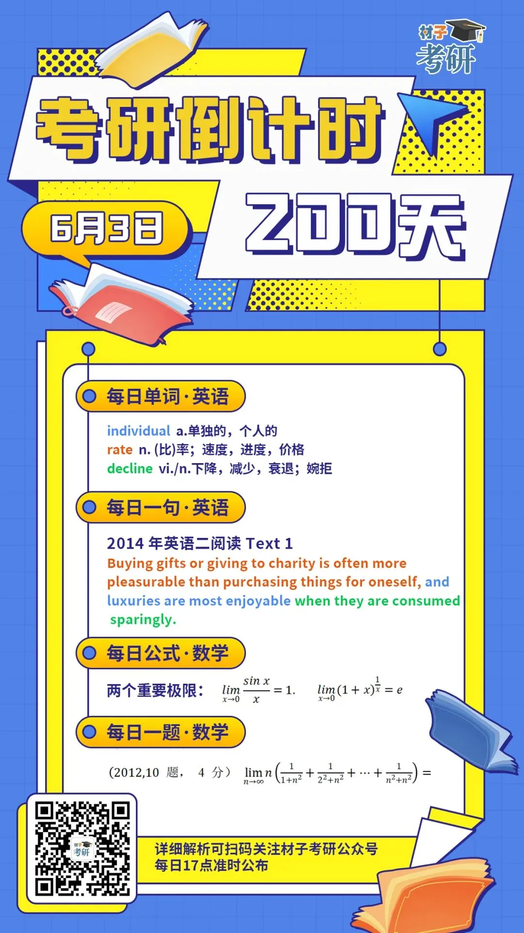 从今天起,材子考研将陪你稳扎稳打,开启 【英语+数学】每日学习计划!