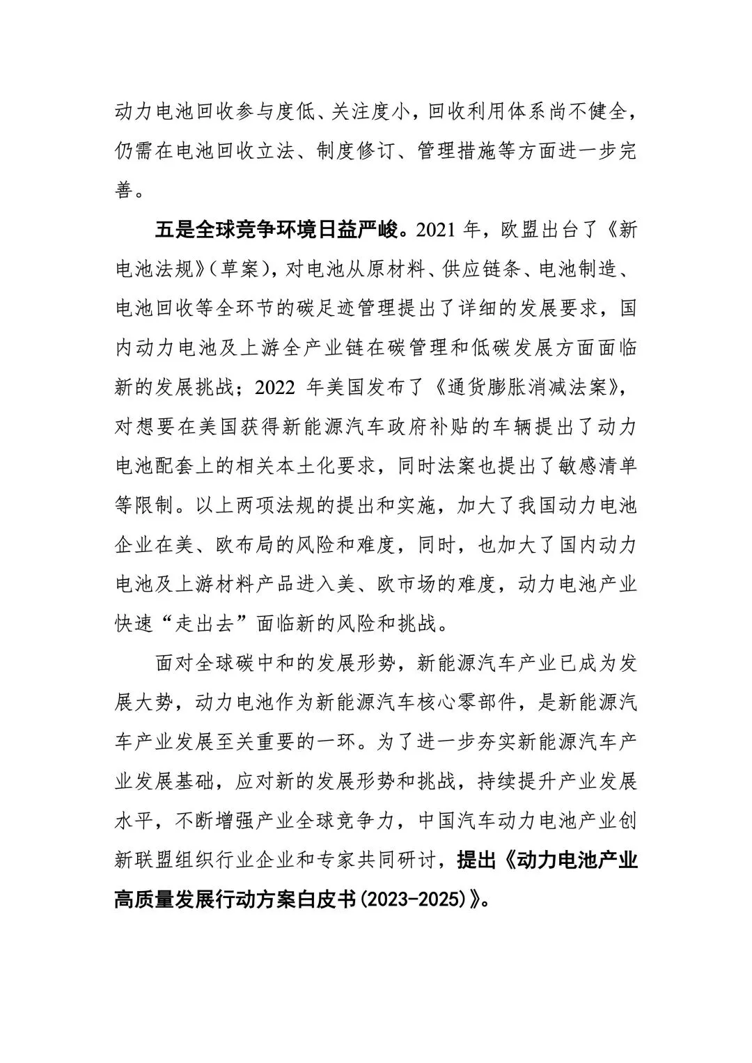 白皮书立足新能源汽车高速增长背景,指出我国动力电池全球领先,但面临产能结构性过剩、原材料价格波动、低温与安全短板、回收体系不完善、海外合规压力加大等挑战。提出 2023-2025 年高质量发展目标,聚焦技术突破、安全保障、智能制造、回收利用、低碳合规、全球化布局七大方向。