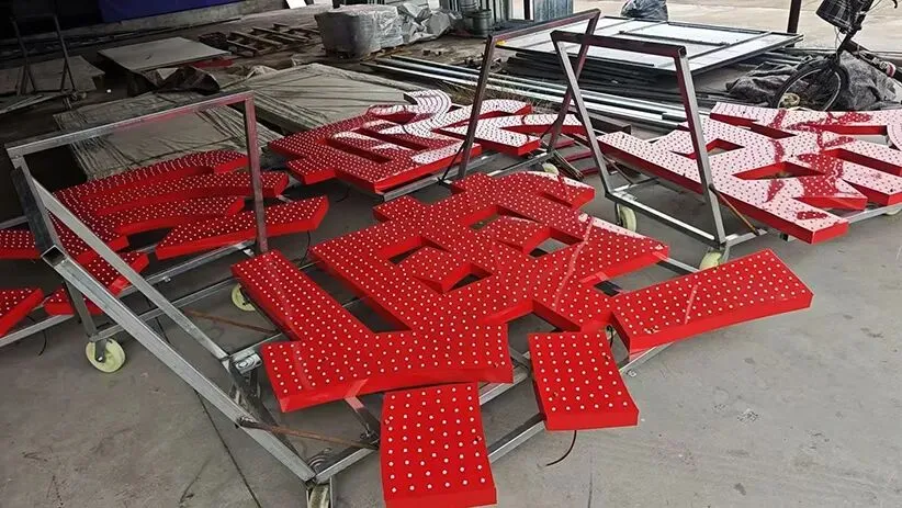 冲孔字顾名思义,就是在金属板上冲出整齐排列的孔洞,然后在背面安装LED灯珠。当灯光透过这些小孔照射出来时,就形成了清晰的文字或图案。这种工艺看似简单,实则蕴含着不少技术含量。特别是在山东这种气候条件下,既要保证招牌的耐用性,又要兼顾美观度,对制作工艺提出了更高要求。