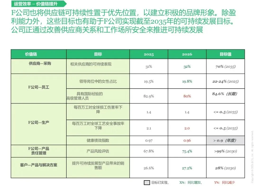 从经营逻辑看,这份文件最值得读的地方,是它没有停留在“战略口号”,而是把战略举措和财务结果直接挂钩。报告指出,F公司一方面通过DrivE和Verbund等效率项目争取年度数十亿欧元级别的收益贡献,另一方面又通过“F式 4.0”、物联网、数据分析、云计算等数字化手段,把效率提升从工厂端延伸到研发、供应链和商业模式端。换句话说,这不是一份泛泛而谈的战略材料,而是一份把“战略—举措—财务回报”串起来的管理报告。