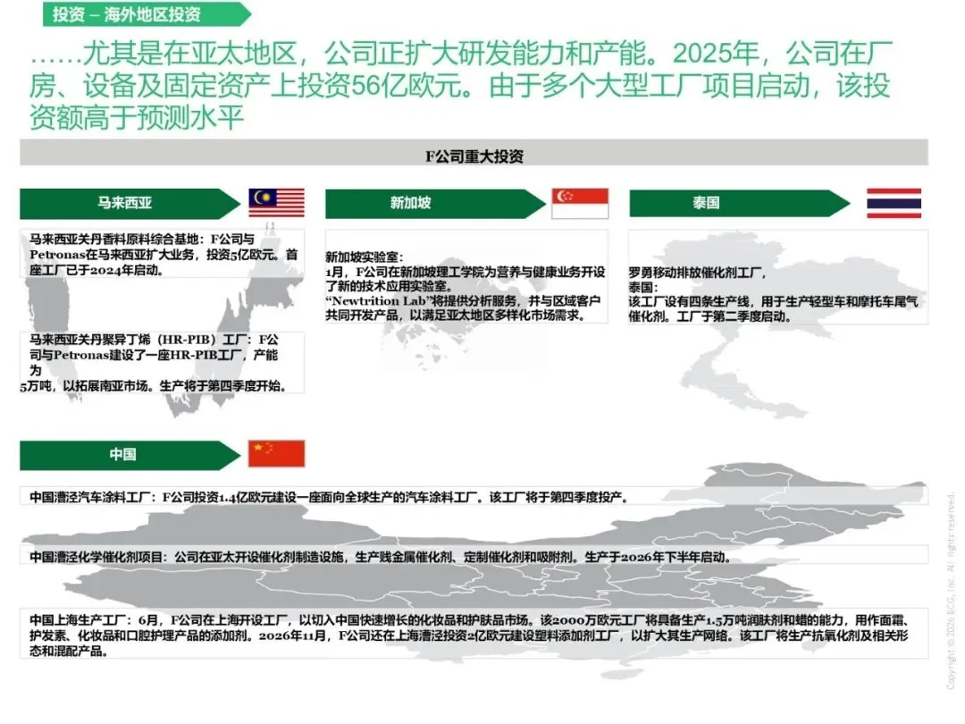 更重要的是,报告揭示了F公司当前最真实的增长方法:短期靠效率,长期靠创新,中期靠组合优化。 一方面,公司通过剥离低盈利、低契合度业务,持续改善EBITDA利润率和资本回报;另一方面,又持续加大研发、区域投资和选择性收购,强化农业解决方案、功能材料、数字农业等更具成长性的方向。报告里关于专利、研发投入、区域扩产、数字农业平台与合作创新的分析,说明F公司并不是被动防守,而是在主动重构未来竞争力。