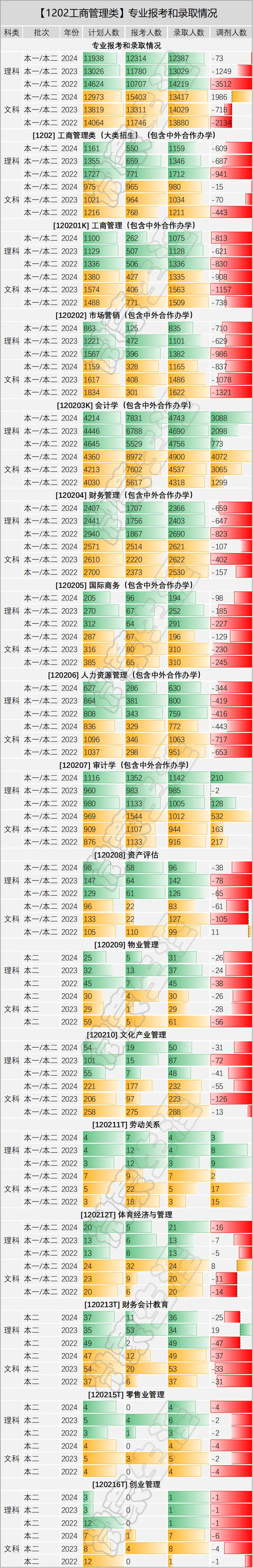 工商管理:调剂-738人、-1157人、-908人,持续为负,2024年缺908人。