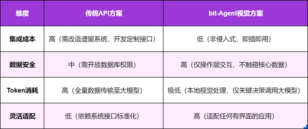 某大型央企的安全产品巡检案例显示:传统RPA方案需要30人天开发周期,而bit-Agent的视觉探索模式仅需2人天即可完成同等复杂度的流程搭建,且后续维护成本降低90%。